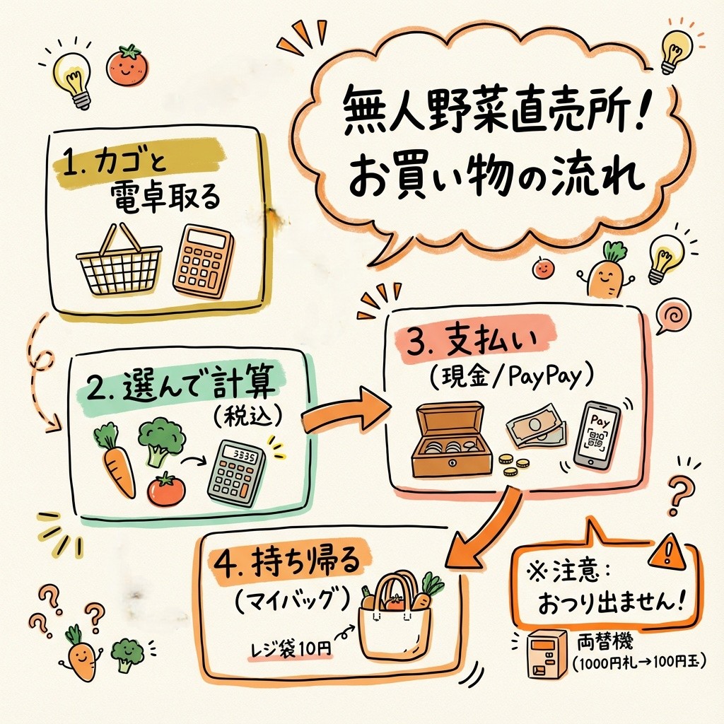 ※荒天時や端境期(野菜が少ない時期)は臨時休業する場合があります。 - お支払い 現金(料金箱)、PayPay